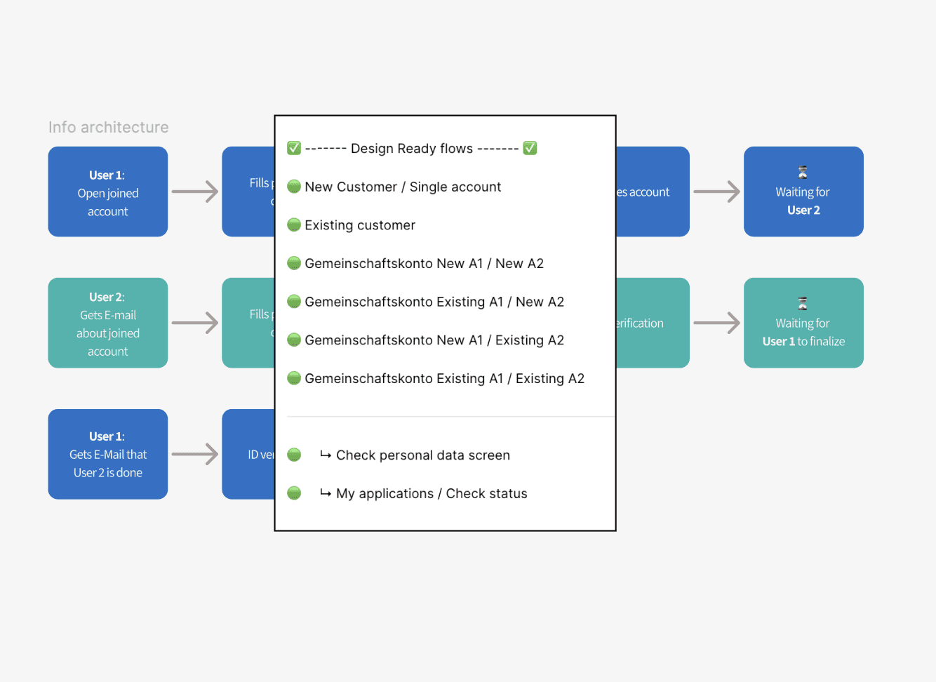 The main challenge was structuring multiple dependencies, like new customer existing customer multiple users (Gemeinschaftskonto) into a clear and understandable flow.