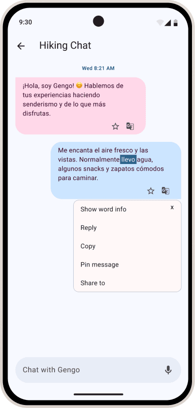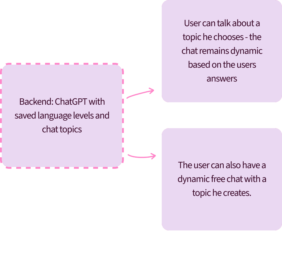 The dynamic chat uses ChatGPT to enable open, adaptive language practice. Conversations adjust to the user’s level, goals, and topics, offering a more flexible and realistic alternative to scripted lessons. Users can practice real-life scenarios with the help of AI, ask follow-up questions, or shift topics freely, without being restricted to fixed lesson structures.