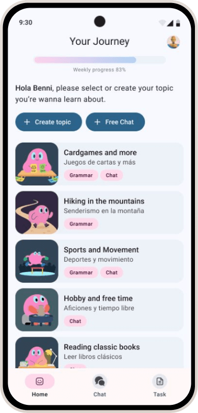 I’m a passionate language learner and this project taught me that good UX in AI products isn’t about endless possibilities, but about creating clarity, trust, and motivation over time.