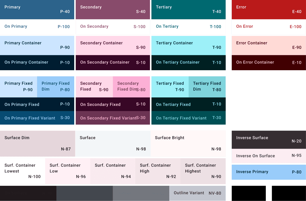 Material 3 Builder was used to define colours , text styles and components.